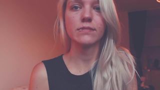 Awek blonde meludah ketiaknya dan menjilatnya